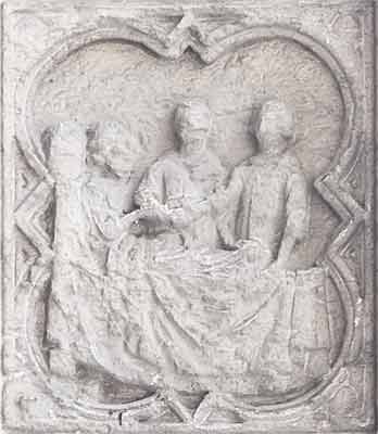 1 mais la famine pesait sur le pays 2 et lorsqu'ils eurent achevé de manger le grain qu'ils avaient apporté d’Égypte, leur père leur dit : "Retournez et achetez-nous un peu de vivres" 3 Juda lui répondit : "Cet homme nous a expressément averti : "Vous ne serez pas admis en ma présence à moins que votre frère ne soit avec vous." 8 Alors Juda dit à son père Israël : "Laisse aller l'enfant avec moi..." 9 je me porte garant pour lui et tu m'en demandera compte..." 11 Alors leur père Israël leur dit : "Puisqu'il le faut, faites donc ceci : dans vos bagages prenez les meilleurs produits du pays pour les apporter en présent à cet homme... 12 Prenez avec vous une seconde somme d'argent et rapportez l'argent qui a été remis à l'entrée de vos sacs de blé : c'était peut-être une méprise. 13 prenez votre frère et partez, retournez près de cet homme. Genèse (43, 1-9) Jacob met la main de benjamin dans celle de Juda.